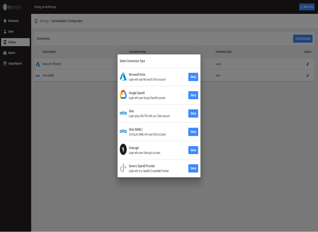 ✅ Okta (SAML) – Configure SAML authentication with an Okta account.
