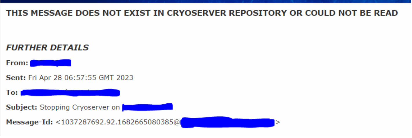 If the admin has not initiated the mailbox reader for a particular mailbox and its emails have not been processed in the archive, selecting those emails will display the following message: