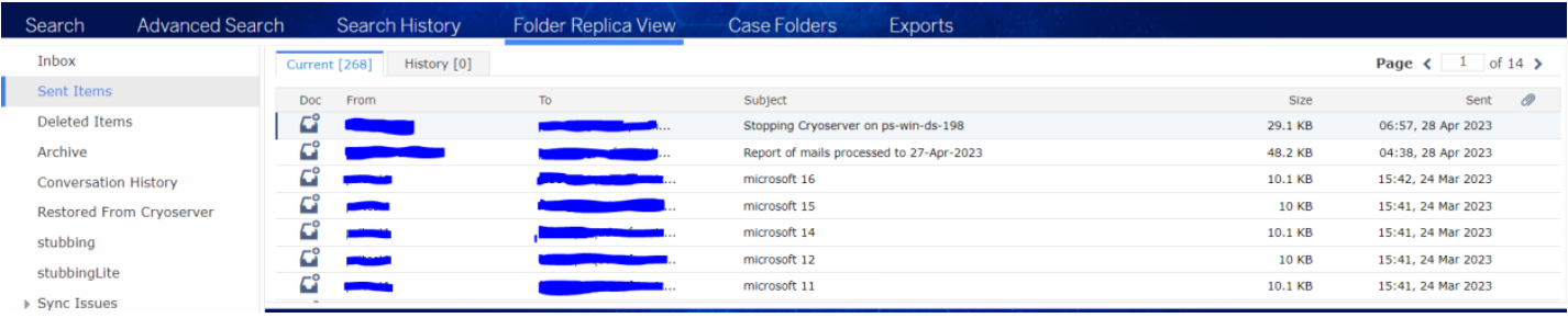 Please note that the Folder replica view also displays the PSTs processed in the system in the same manner, based on their mapping with the user's email addresses.