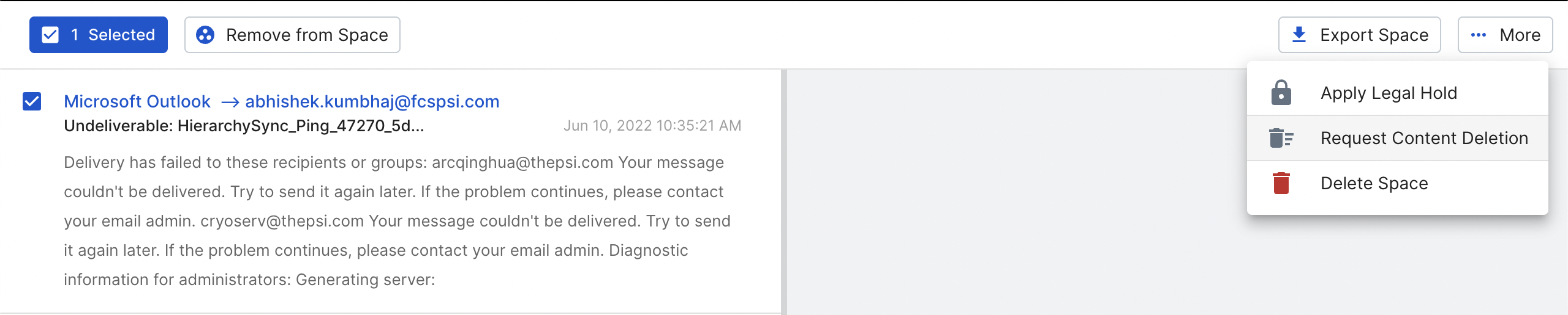 To begin, you must create a "Space" to hold the emails that you want to delete. This area can accommodate a minimum of one or a maximum of hundreds of entries for deletion.
